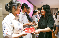 李俐萱女士向品學兼優(yōu)的學生頒發(fā)興業(yè)助學金。